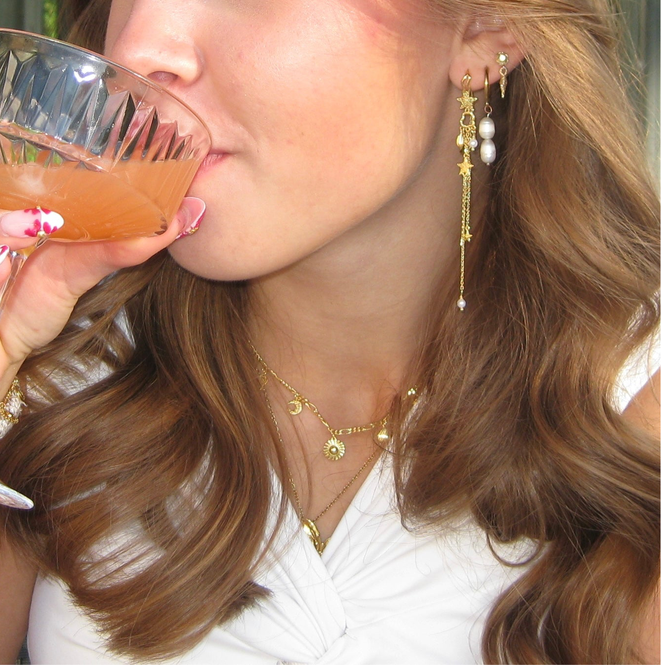Dieses mit Sorgfalt und Präzision gefertigte Schmuckstück besteht aus echtem Silber, das aufwendig mit glänzendstem 24-Karat-Gold vergoldet ist. Der goldene Glanz umrahmt die natürlichen Süßwasserperlen und ihren einzigartigen Glanz auf eine Weise, die Luxus und Raffinesse ausstrahlt.